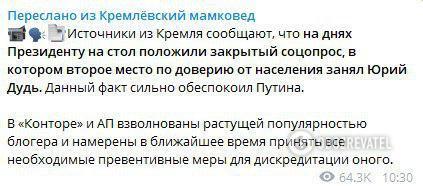 "Источники из Кремля сообщают: там все очень взволнованы растущей популярностью блогера и намерены в ближайшее время принять все необходимые превентивные меры для его дискредитации. Тем более, что такая популярность сильно обеспокоила самого Путина", – написали они.