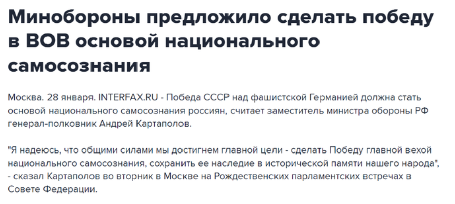 Но ладно проблемы национальной дисфории (они на России имеют столь же вечную природу, как и она сама), давайте лучше обратим внимание на очередную идеологическую отрыжку Минобороны РФ: