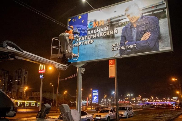 В нескольких районах Киева появились провокационные билборды с изображением некого Олега Катющенко и надписью: «Россия – наш главный стратегический партнер». Об этом пишет «Информатор».
