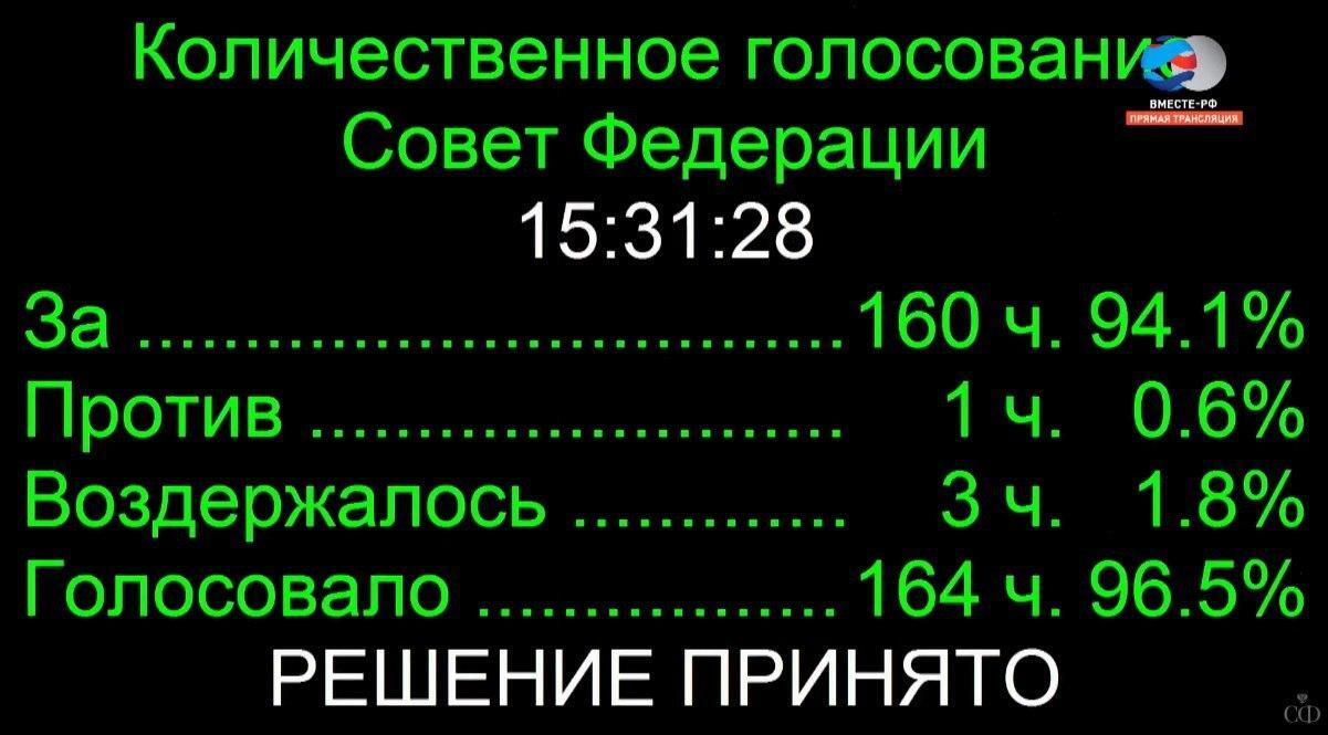 Позже Совет Федерации одобрил закон о поправках в Конституцию России. Также был опубликован их полный текст.