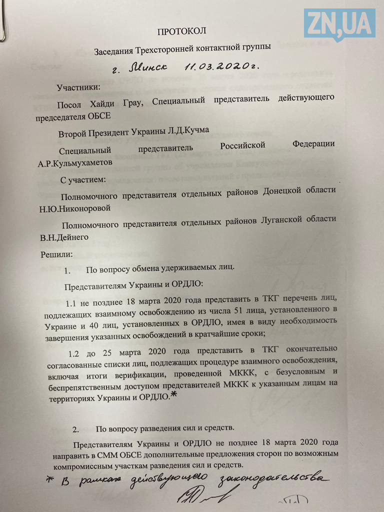 В ходе заседания Трехсторонней контактной группы по урегулированию ситуации на Донбассе подписаны соглашения, фиксирующие субъектность ОРДЛО, а Россия вместе с Германией, Францией и ОБСЕ определяется как гарант-наблюдатель. Об этом сообщает ZN.UA.