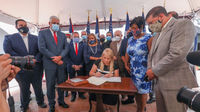 Participando de la firma de la Ley para la Definición Final del Estatus Político de Puerto Rico que da paso a la celebración de un Plebiscito el 3 de noviembre.@wandavazquezg pic.twitter.com/mxt1NG79HG
