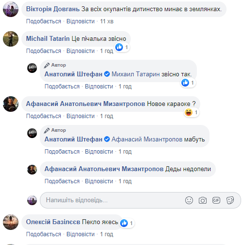 "При всех оккупантов детство проходит в землянках", "Это печалька, конечно", "Новое караоке?", "Деды не допели", "Ад какой-то", "Впечатление, что для них всех Вторая мировая еще не закончилась. Вперед в прошлое", – пишут патриотически настроенные граждане.