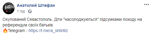 "Оккупированный Севастополь. Дети "наслаждаются" итогами похода на "референдум" своих родителей", – возмутился защитник.