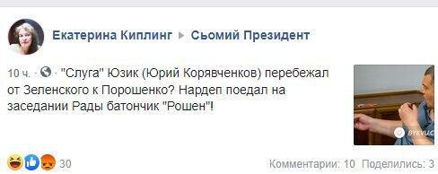 "Эти батончики на них действуют снотворно", "Верховная Рада – это "95 квартал", "Перекусы никто не отменял", "Слуга Юзик (Корявченков) перебежал от Зеленского к Порошенко? Нардеп поедал на заседании Рады батончик "Рошен", – шутят в соцсетях.