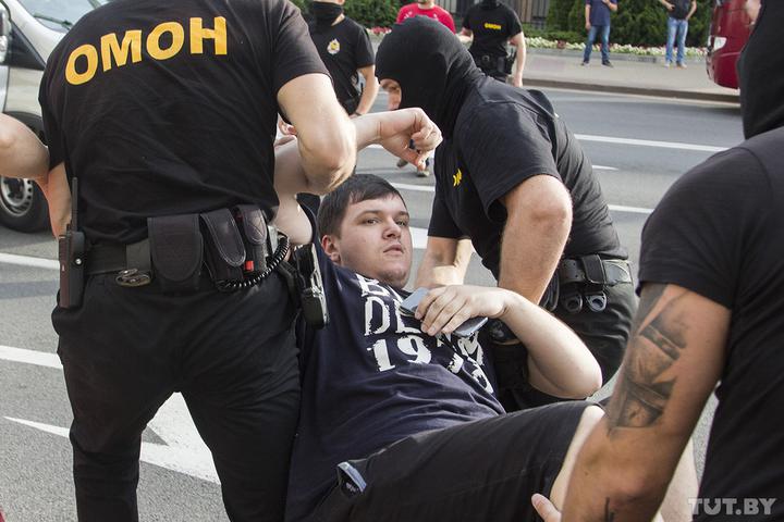 Участники акции около 18.00 собрались возле сцены у театра эстрады в городском парке, где проходил праздничный концерт ко Дню независимости. Уже через несколько минут правоохранители задержали первого участника акции: милиционеры подошли к компании молодых людей, которые сидели на лавочке возле сцены, вывели одного из парней и усадили его в микроавтобус.