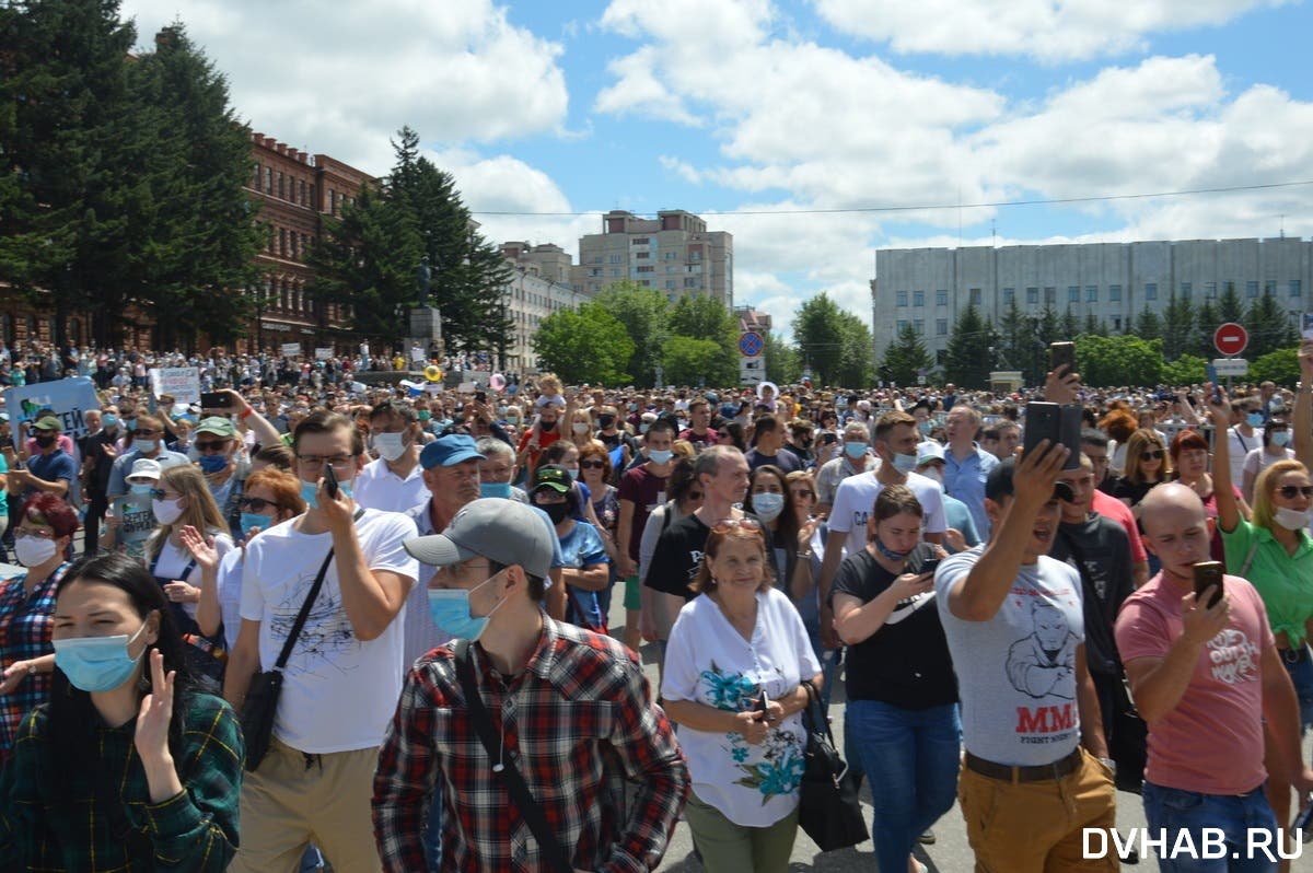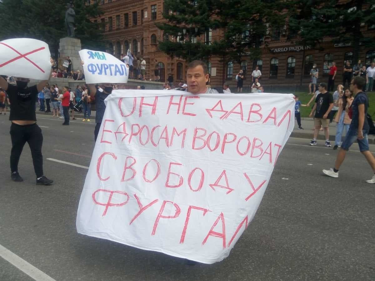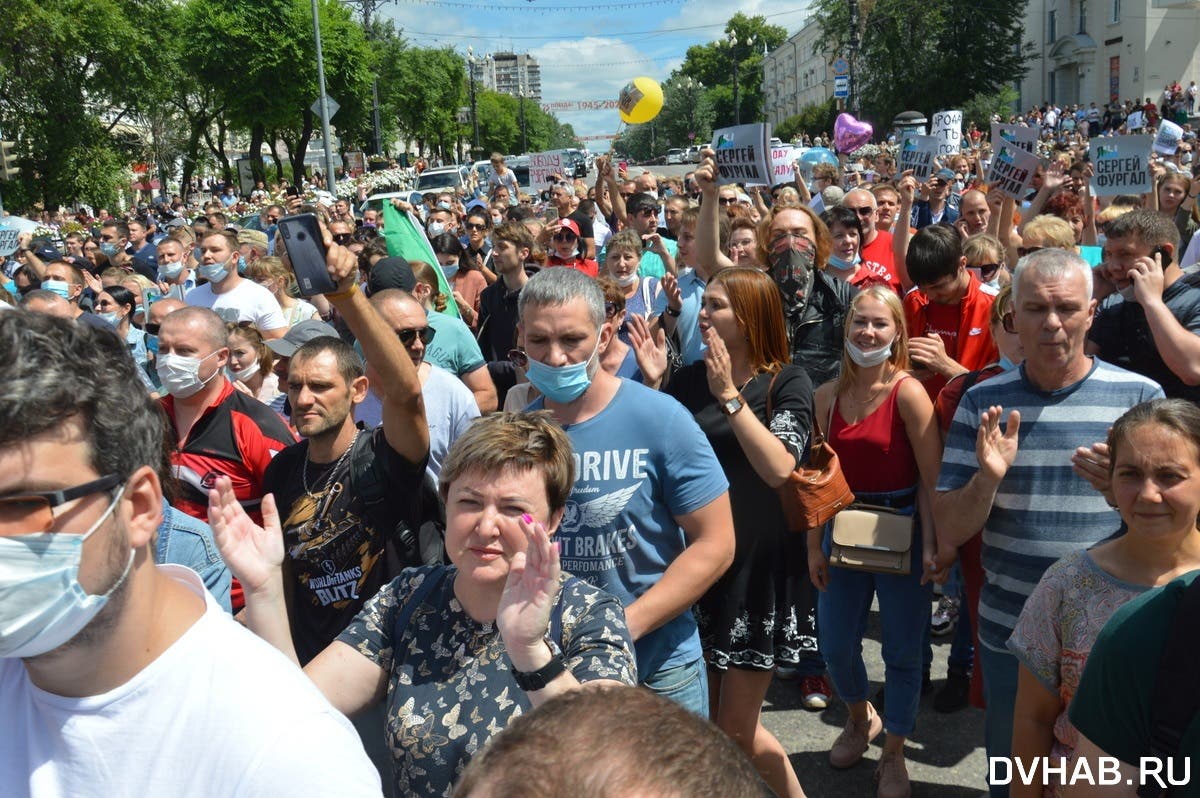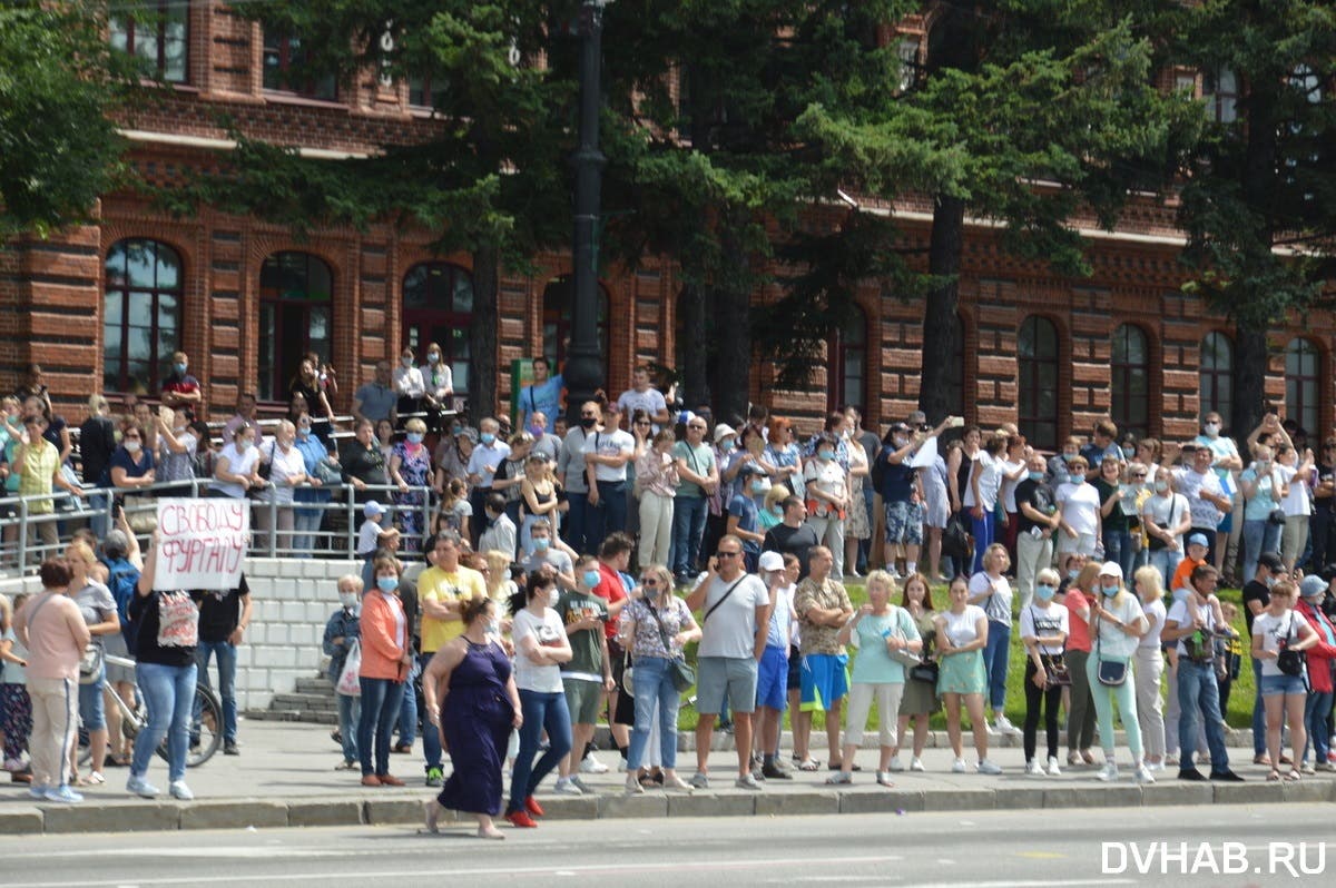 11 июля в Хабаровске (Россия) прошла несанкционированная акция в защиту губернатора края Сергея Фургала, которого обвиняют в организации убийств.