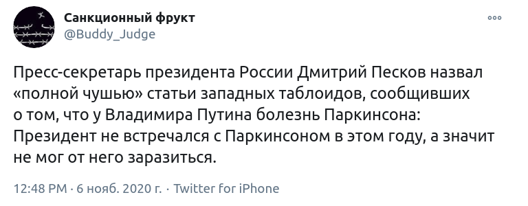 В свою очередь спикер главы Кремля Дмитрий Песков заявил, что информация о болезни Путина не соответствует действительности.