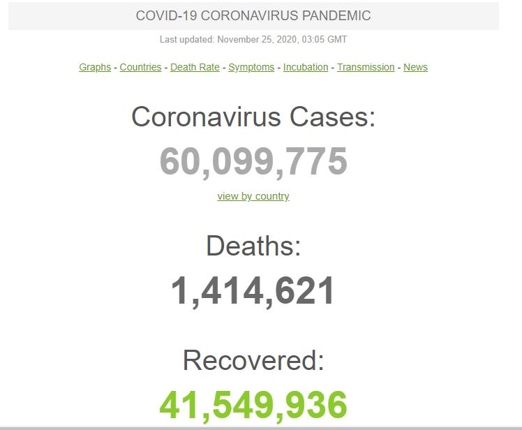 Согласно данным портала Worldometers, скончались от коронавирусной болезни больше 1,4 млн пациентов, а выздоровели – почти, 41,6 млн. Наибольшее количество больных в США – 13 млн человек, Индия – 9,2 млн и Бразилия – 6,1 млн.