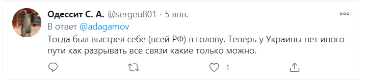 "Так он в нее еще в 2014-м выстрелил, когда захватил Крым и устроил войну на Донбассе. С тех пор хромает не только он сам, но и вся Россия — санкции, "страна-изгой" и все прочие ништяки от победы над здравым смыслом", - написал Адагамов на своей странице в социальной сети.