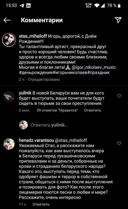 В комментариях под постом Фондом культурной солидарности Беларуси пользователи соцсетей потребовали от артисток объяснений. "А вам нормально было выступать перед диктатором?", "Сколько вам заплатили за этот час унижения и низости, певицы?"