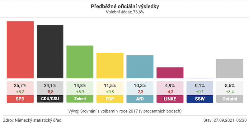 Понятно, что это не полный разгром консервативных сил и они имеют реальные шансы пободаться с оппонентами в гонке за пост канцлера, но сделать это будет не просто сложно, а очень сложно, поскольку в сравнении с предыдущим составом Бундестага, где они имели на 50+ мандатов больше, чем СДПГ, сейчас ситуация изменилась радикально и социалисты будут действовать на волне своего безусловного успеха. Соответственно, этот драйв может оказаться решающим именно в коалиционной эпопее.