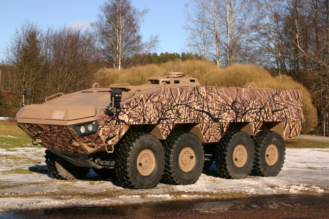 Военная техника прибывает колоннами. Вдоль границы, от села Толче, идет одна из таких колон бронетехники. По всей видимости, это колесные БТРы "Росомак".