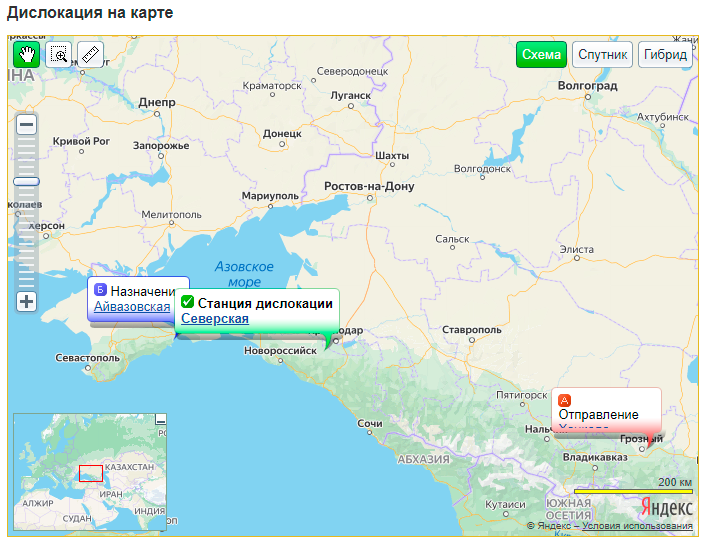 Эшелон с танками следует на станцию Айвазовская, куда в апреле этого года везли войска 58-й армии, расположившиеся тогда на полигоне Опук на Керченском полуострове в Крыму (по состоянию на 22 ноября этот полигон пустует).