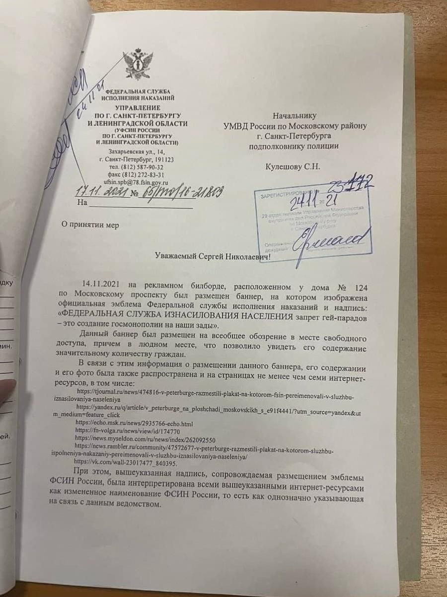 Обидчивый ФСИН Общество 28-ноя, 20:439 5 777 0 ФСИН обиделась на плакат с надписью "Федеральная служба изнасилования населения", который повесили в Петербурге.Служба обратилась в полицию, с жалобой, что расшифровка аббревиатуры не соответствует ЕГРЮЛ.