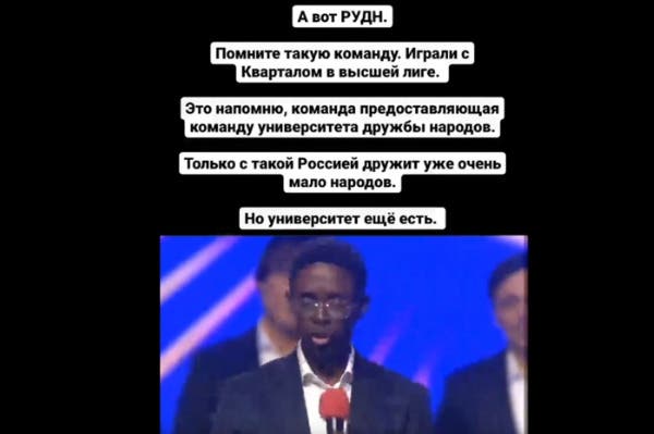 Также же его огорчил номер команды РУДН, которая ранее играла с «Кварталом 95» в Высшей лиге КВН.