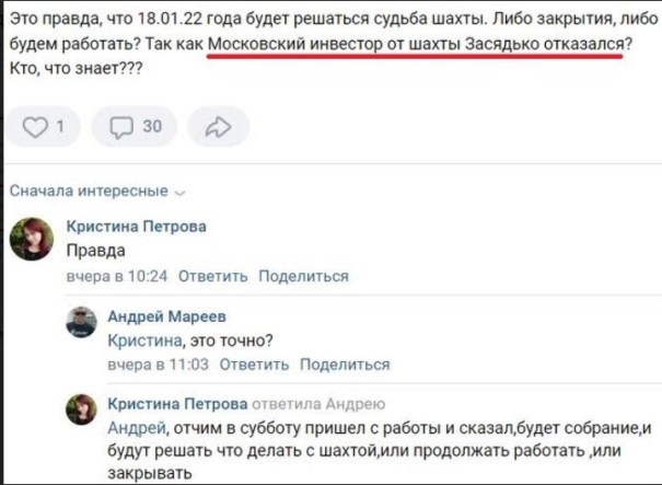 Шахтеры пишут, что «московский инвестор от шахты Засядько отказался» и что будет дальше неизвестно.