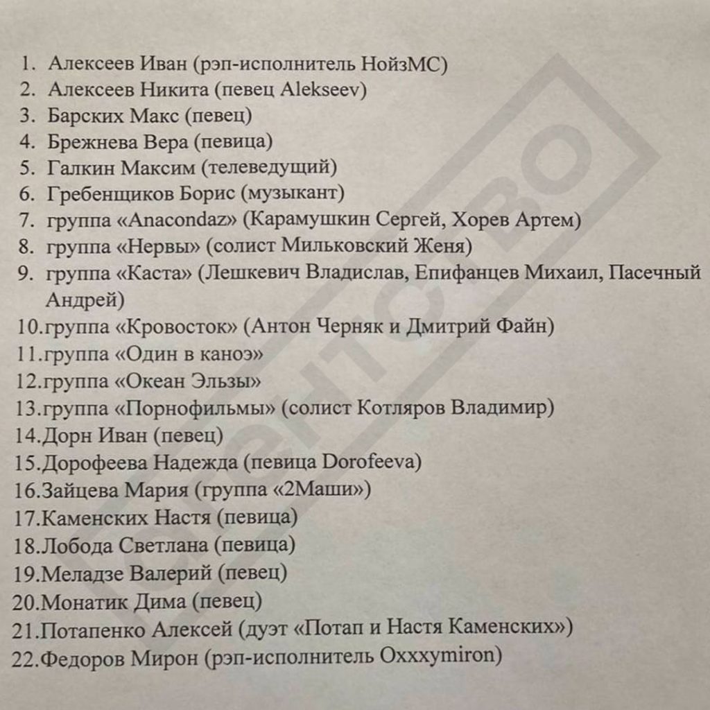 Российские звезды, которым запретили выступать в РФ: Максим Галкин, Валерий Меладзе, Борис Гребенщиков, рэперы НойзМС и Oxxxymiron, группы "Каста", Anacondaz, "Кровосток", "Порнофильмы", "2Маши".
