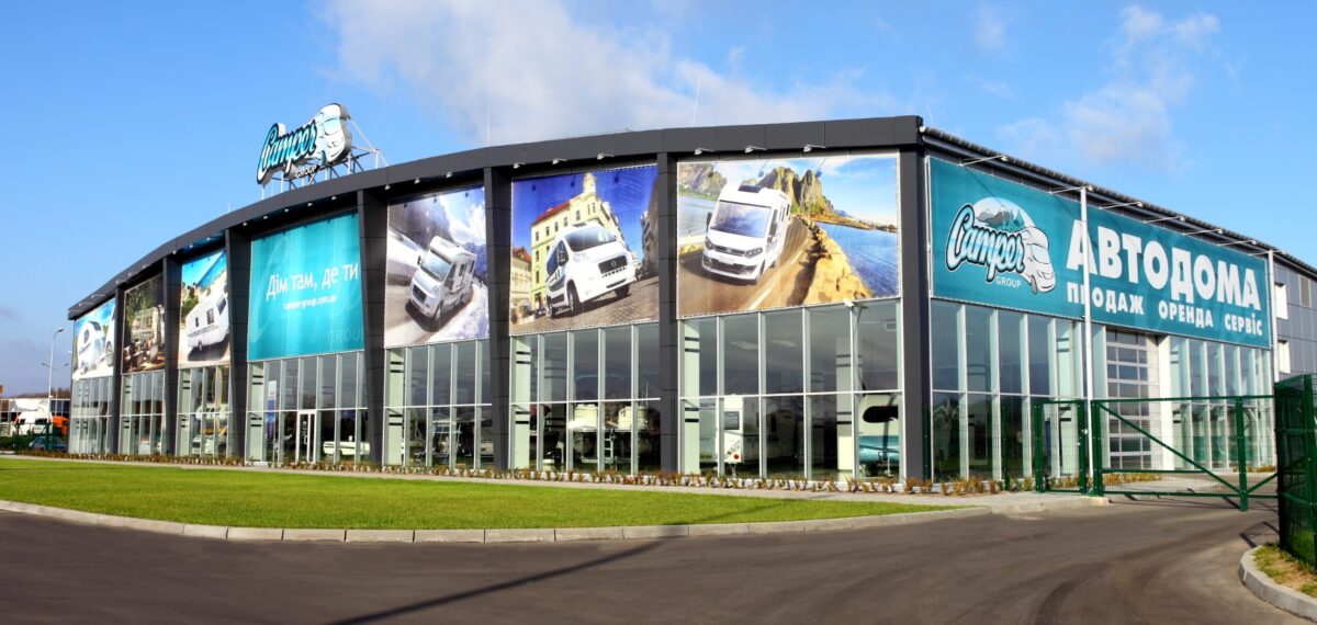 Автосалон называется Camper Group и продает автодомы. Находится на 29-м километре трассы Киев-Чоп в районе населенного пункта Мрия.