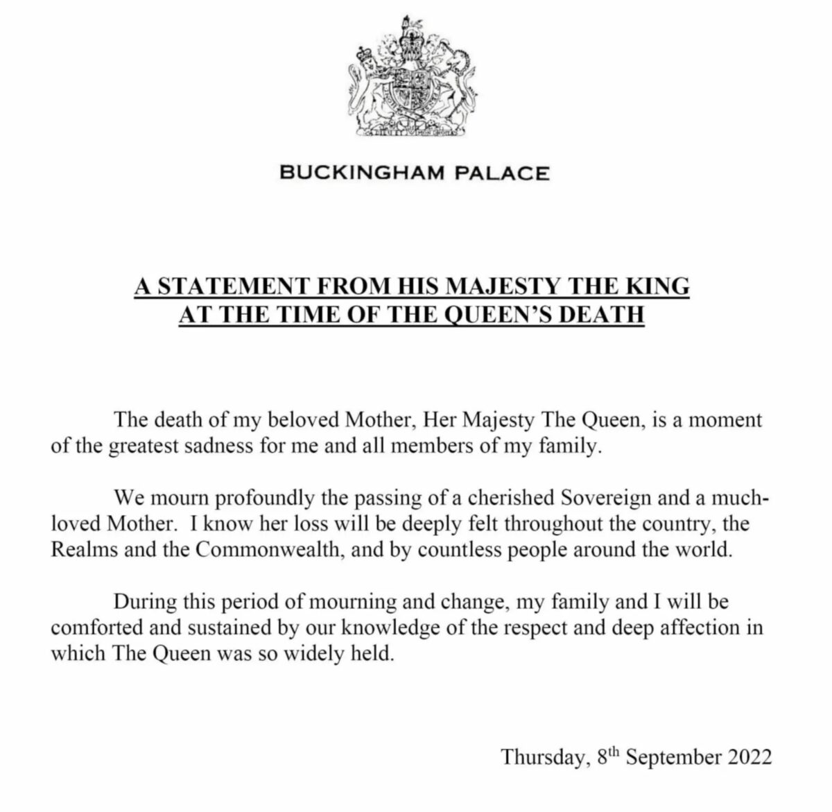 Новый монарх уже выпустил первое заявление в высоком статусе короля. Он выразил глубокое соболезнование смерти его матери.