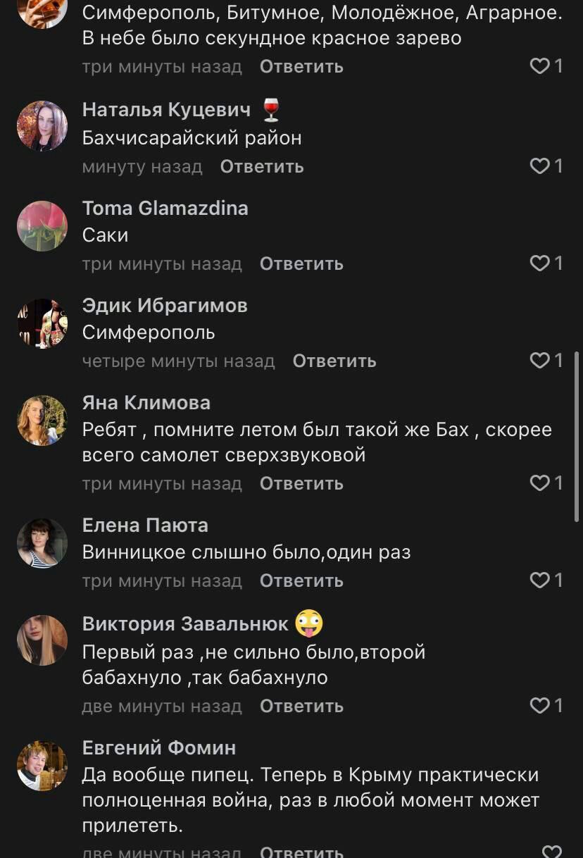 Позже появилась информация, что кроме Симферополя, Сак и Бахчисарайского района, на юге которого было слышно 2 "бавовны", звуки взрывов прозвучали в Гвардейском, Джанкое, Нижнегорском.