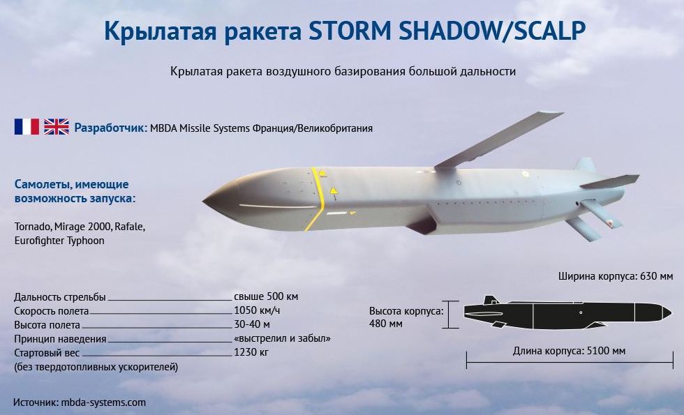 Scalp — это французская версия британских Storm Shadows, которые Лондон уже передал Украине. Это дальнобойное оружие может поражать цели на расстоянии до 500 км.
