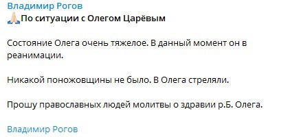 "Состояние Олега очень тяжелое. В данный момент он в реанимации", – заявил он.