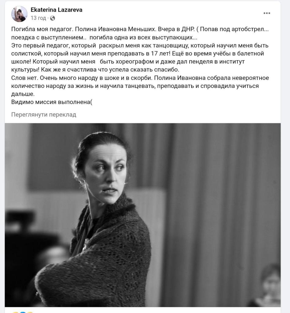 В российских телеграм-каналах пишут, что в результате высокоточного ракетного удара было ликвидировано около 25 оккупантов, более 100 получили ранения разной степени тяжести. Также сообщают о гибели российской актрисы Полины Меньших, которая проводила концерт.