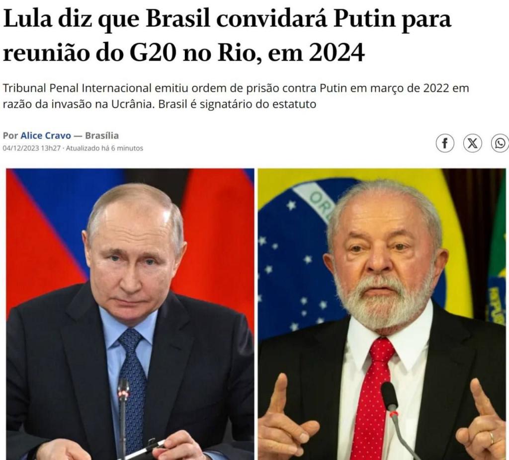 «Президент россии Путин будет приглашен на саммит «Двадцатки» в Бразилию, но ему придется иметь дело с международным ордером на его арест», – сказал да Силва.