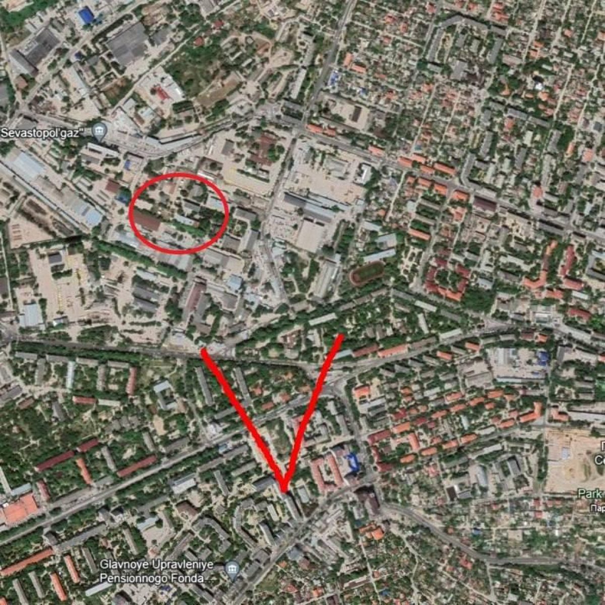 Аналитик OSINTtechnical заявил, что вероятно, боеголовки врезались в главный центр связи Черноморского флота России в Севастополе. В качестве подтверждения он показал снимки спутника.
