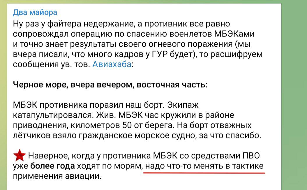 «Самолеты также вынуждены подходить к БЭКам практически вплотную, неизбежно попадая под огонь ПЗРК, которые противник размещает прямым путем, на них установленных», — добавил Fighterbomber.