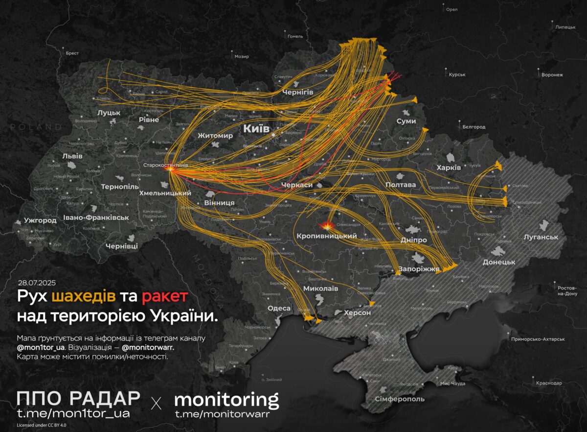 В ночь на 28 июля Россия атаковала Украину 331-м средством воздушного нападения. Об этом сообщают Воздушные силы ВСУ.